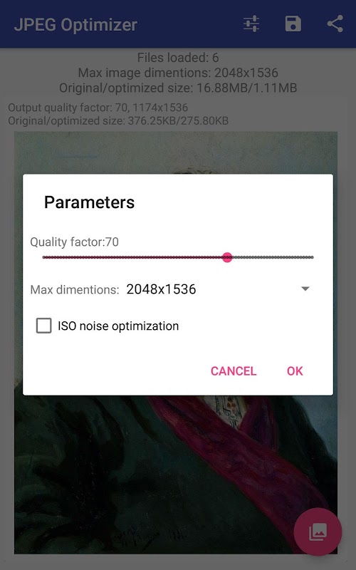 इस एप्लिकेशन को आप गुणवत्ता में नगण्य नुकसान के साथ फोटो संपीड़ित करने के लिए अनुमति देगा।