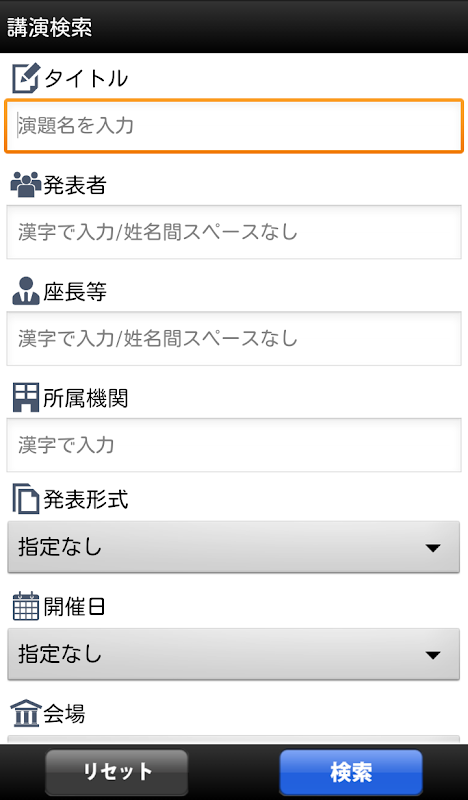 タイトル、発表者などで簡単に検索ができます。