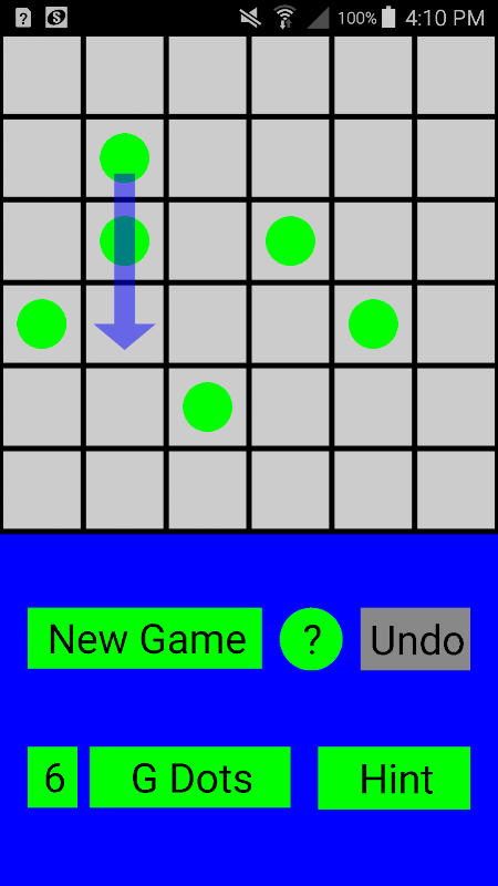 डॉट्स को हटाने के लिए आसन्न डॉट्स पर डॉट्स जंप करें जब तक कि केवल एक ही शेष रह जाए।