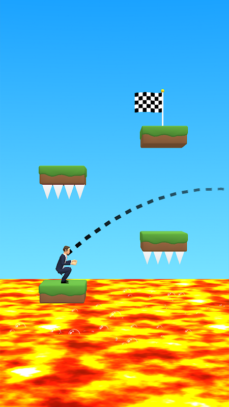 किस दिशा में कूदना है यह तय करने के लिए मीटर को नियंत्रित करें। सावधान रहें कि कांटों, मैग्मा, या दीवारों जैसी बाधाओं से न टकराएं!