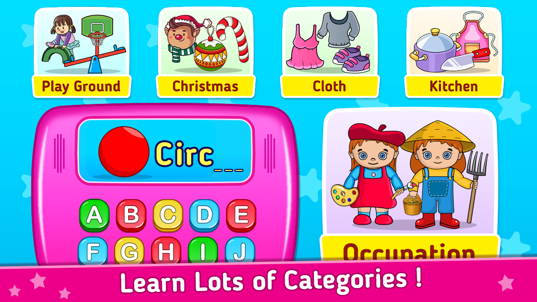 - इस गेम में बच्चों के लिए 30+ अलग-अलग श्रेणियाँ हैं।
