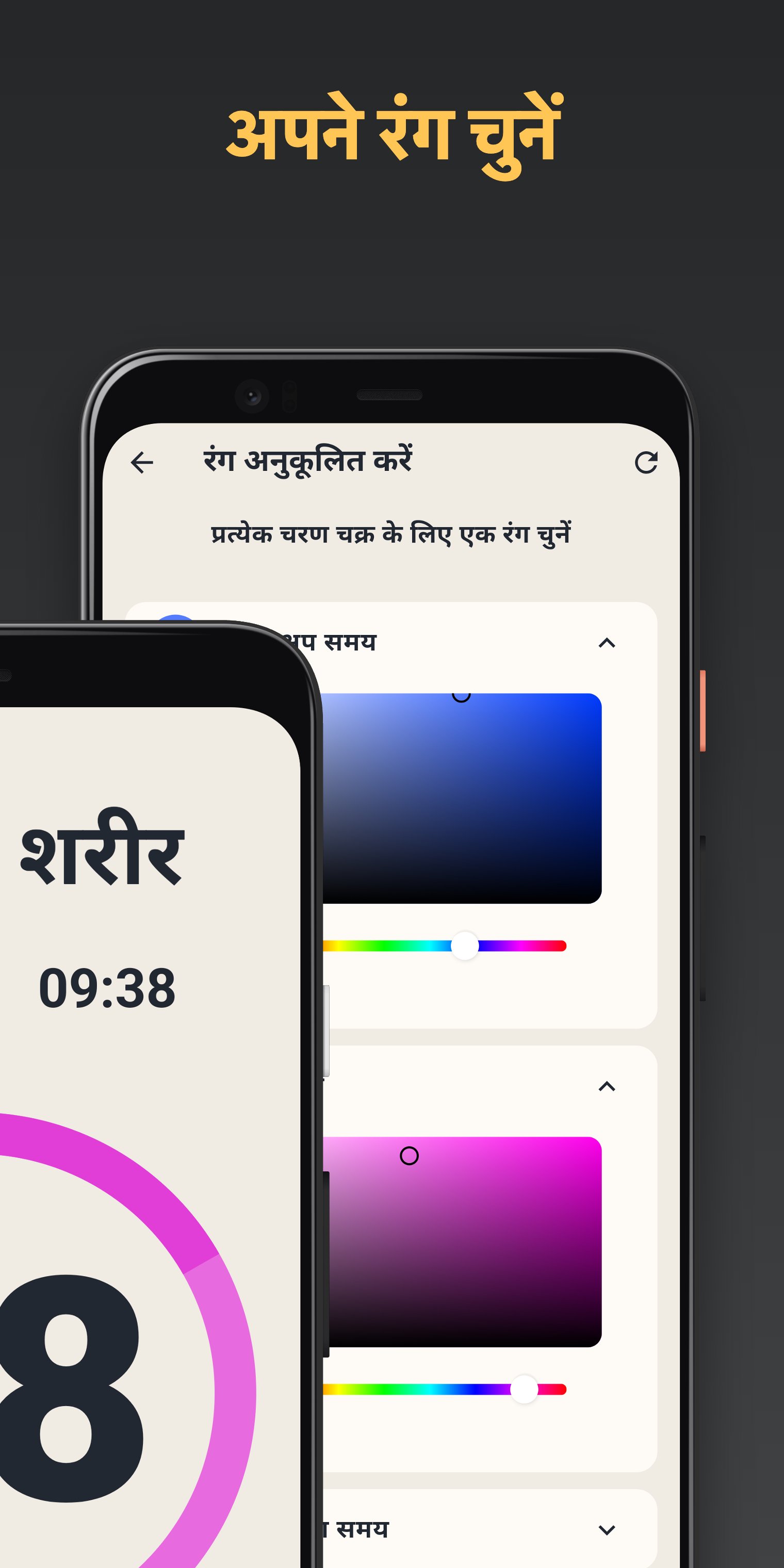 डिस्प्ले सेटिंग्स: समय प्रदर्शन को अपनी आवश्यकता के अनुसार अनुकूलित करें और प्रगति को ट्रैक करने के लिए एक सर्कुलर कलर प्रोग्रेस बार के साथ।