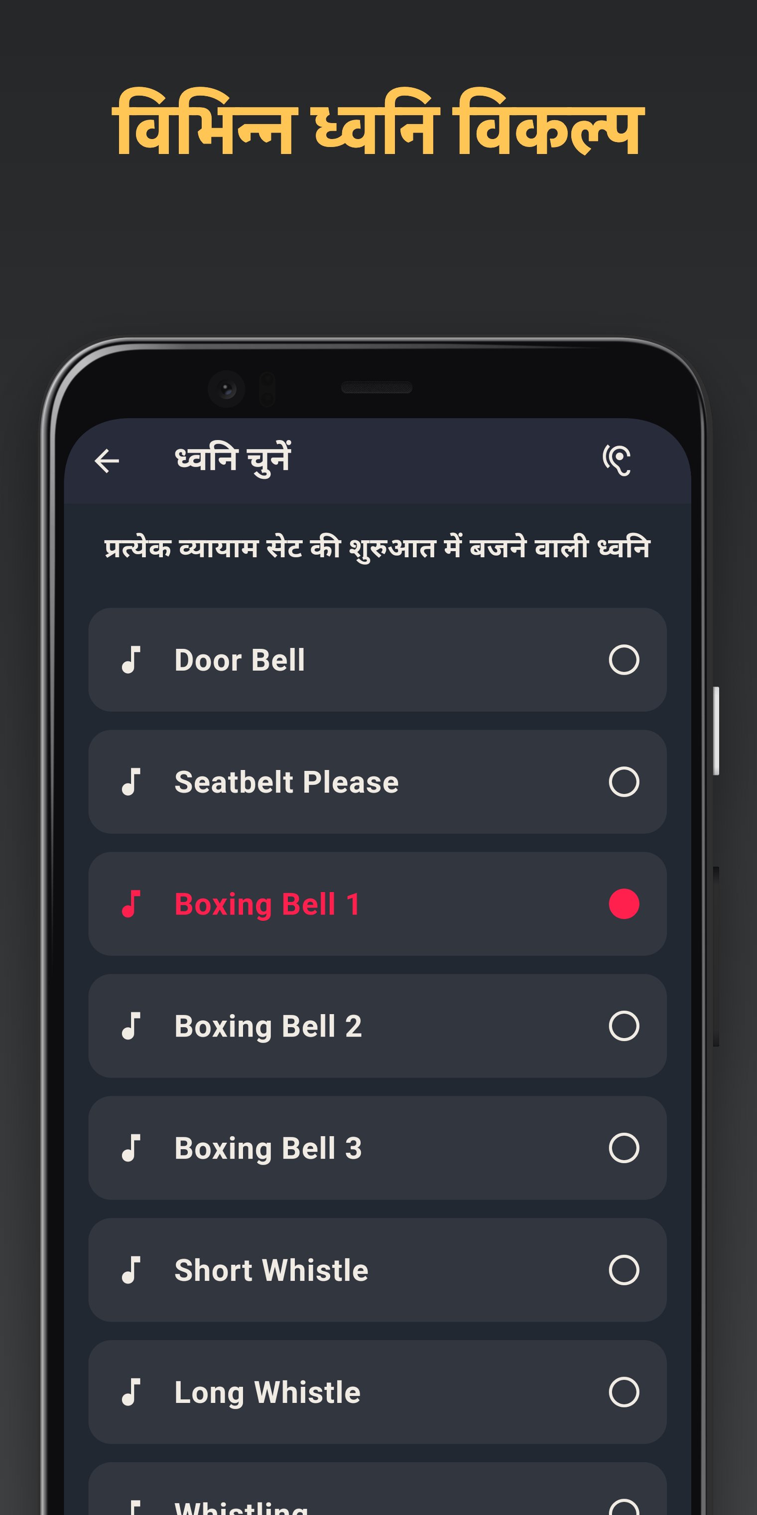 विभिन्न अलार्म ध्वनि विकल्प: वर्कआउट, योग और ध्यान जैसी गतिविधियों के लिए विभिन्न उपयुक्त अलार्म ध्वनि विकल्प चुनें।
