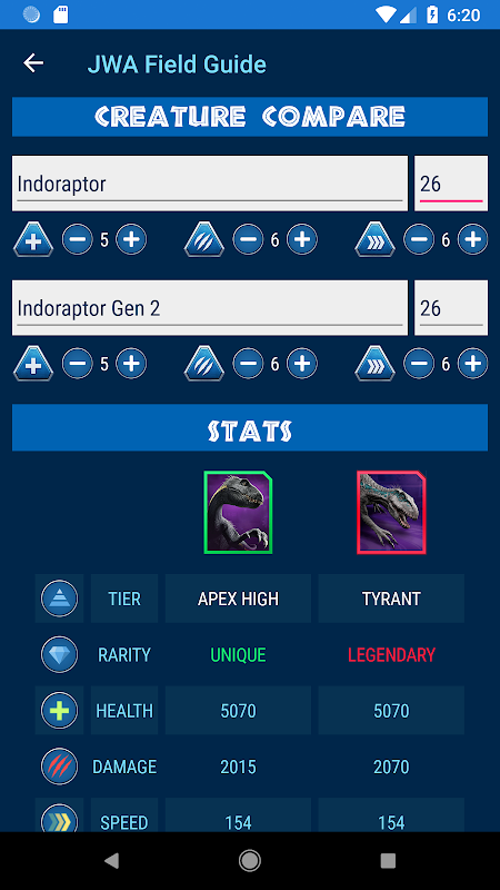 • चयनित डायनासोर के सभी स्तरों के लिए स्वास्थ्य और नुकसान के आंकड़ों की पूर्ण, गणना की गई सूची देखें (आप अब केवल 26 वर्ष तक सीमित नहीं हैं!)