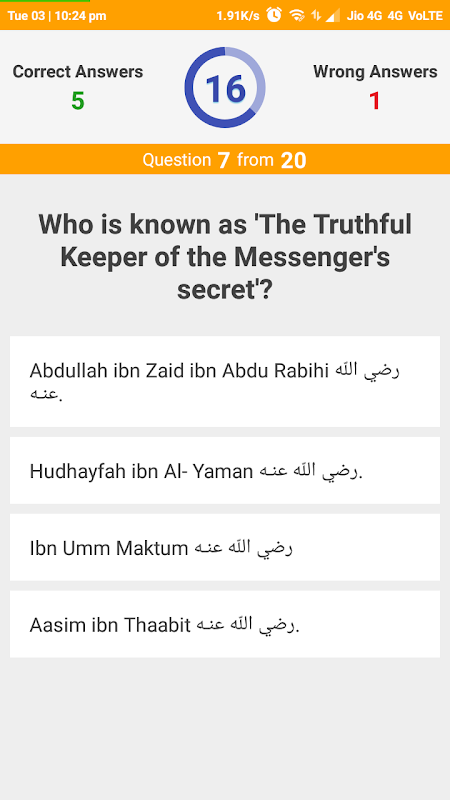 अनुप्रयोग भी बहुविकल्पीय परीक्षा विकल्प, जहां उपयोगकर्ता एप्लिकेशन से सीखने के बाद विभिन्न विज्ञान में इस्लाम के अपने ज्ञान का परीक्षण कर सकते हैं के साथ आता है।