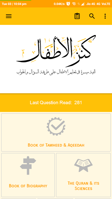 अनुप्रयोग Aqeedah (विश्वास) के विषय पर जवाब के साथ 1500 से अधिक प्रश्न शामिल हैं, Tawheed (अल्लाह की एकता), Fiqh (न्यायशास्त्र) और इस्लाम के अन्य विषयों कि हर मुसलमान विशेष रूप से बच्चों को पता करने के लिए बाध्य किया जाता है और बड़ों यह सीखने से बचने नहीं कर सकते ।