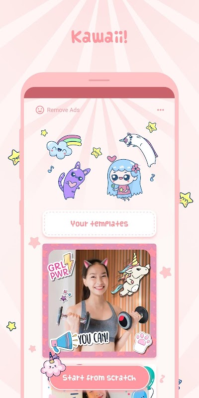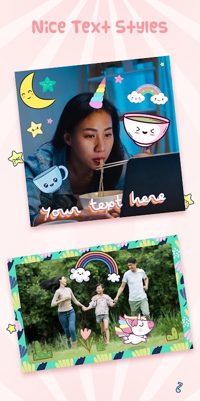 - इस kawaii फोटो एडिटर के साथ आप अपनी तस्वीरों पर अच्छे और मजेदार स्टिकर लगा सकते हैं