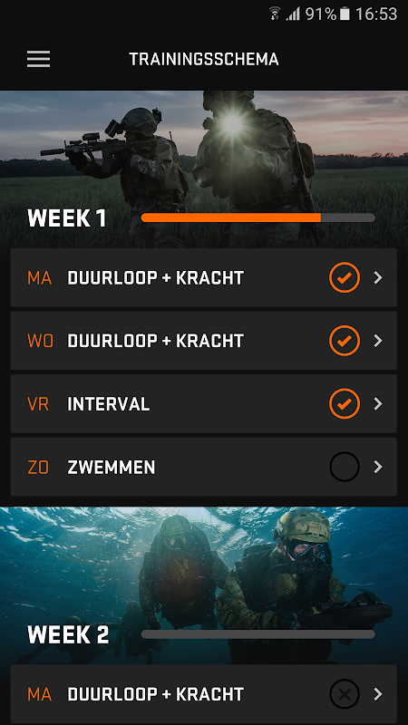 - inloggen met je Defensie-account, zodat je trainingsschema bewaard blijft;