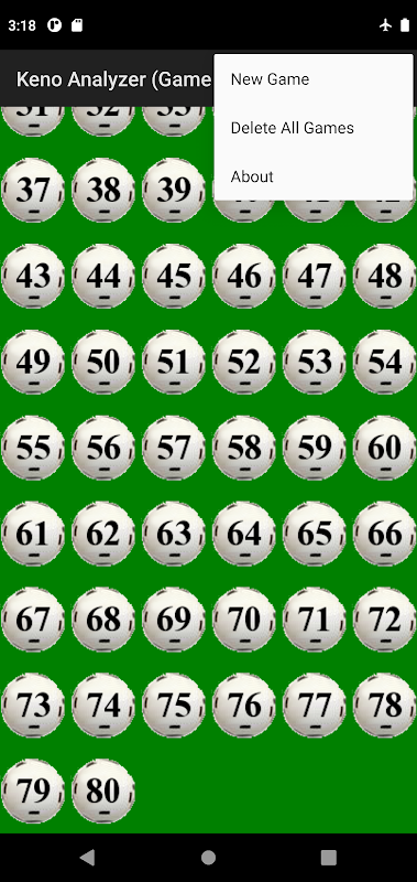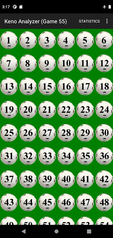 जब आप केनो गेम में भाग लेते हैं, तो आप ऐप पर प्रत्येक गेंद को एक साथ "टच" करेंगे (स्क्रीनशॉट देखें)। जब खेल (दौड़) समाप्त हो जाता है, तो आप एक "सांख्यिकी" प्रदर्शित कर सकते हैं जो आपको दिखाती है कि कौन सी गेंदों का चयन किया गया था (प्रतिशत के आधार पर "गर्म" रंग के साथ)। खेलों की एक श्रृंखला में, आप देख सकते हैं कि प्रत्येक क्रमांकित गेंद को कितनी बार चुना गया था - गिनती और प्रतिशत दोनों के रूप में। * यह ऐप बिना किसी सीमा के पूरी तरह कार्यात्मक है।