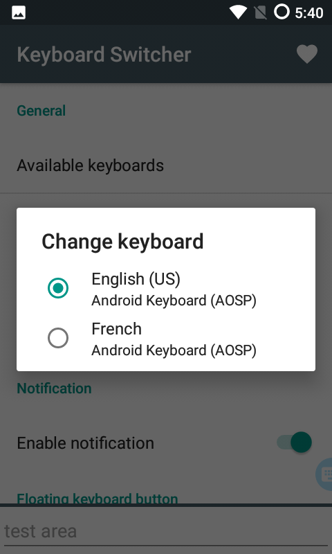 कीबोर्ड स्विचर एक कीबोर्ड चयन एप्लिकेशन है, यह कई तरीकों से वर्तमान कीबोर्ड से दूसरे कीबोर्ड पर आसानी से स्विच करने की अनुमति देता है, स्क्रीन पर उपलब्ध एक विचारशील फ्लोटिंग बटन, एक शॉर्टकट के लिए धन्यवाद , एक टाइल, या एक अधिसूचना।