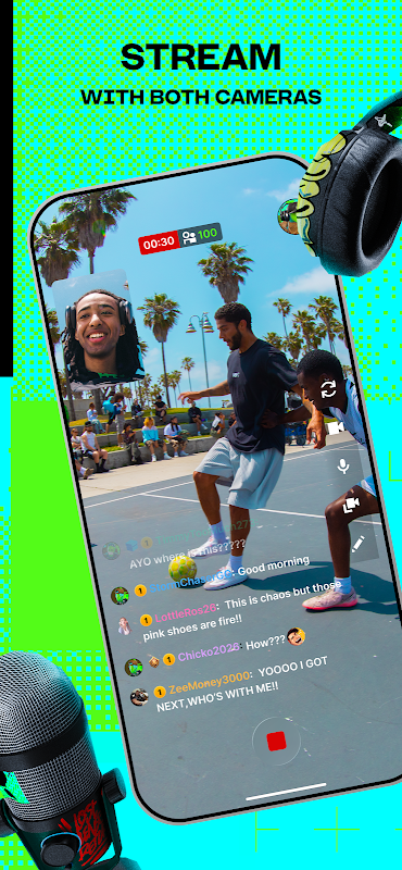अर्ली एक्सेस आपको वो सब कुछ देता है जिसकी आपको असल ज़िंदगी में धूम मचाने के लिए ज़रूरत है। सीधे ऐप से लाइव जाएं। अपने फ्रंट और बैक कैमरे से (एक ही समय में) स्ट्रीम करें। अपनी स्क्रीन शेयर करते समय अपने कमेंटेटर्स को हर एंगल दिखाएं।