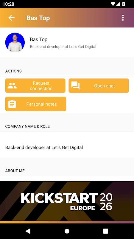 किकस्टार्ट यूरोप 2026 का आधिकारिक ऐप आपको उपस्थित लोगों, चैट, कनेक्शन सेंटर और मैच के लिए स्वाइप करने जैसी सुविधाओं तक निर्बाध पहुंच प्रदान करता है, जिससे आप पूरे कार्यक्रम के दौरान जुड़े और सक्रिय रह सकें।