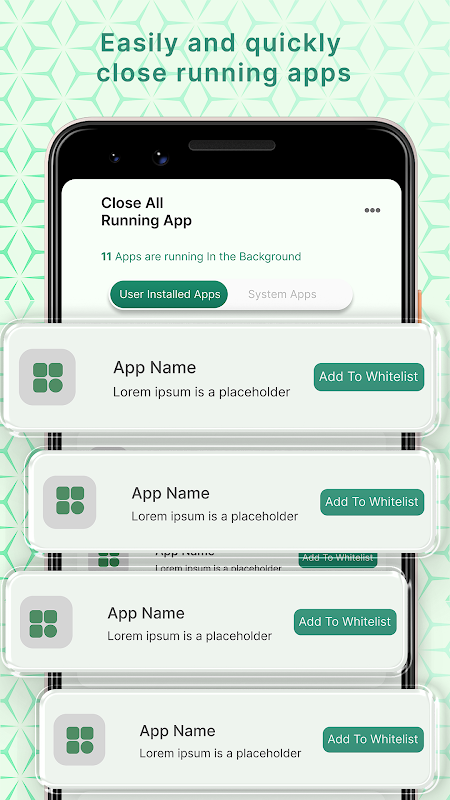 App Killer Manager app help users close apps running in the background. Sometimes many apps run in the background in the phone which consume a lot of phone memory and ultimately make the phone slow. Use the Close All Running Apps tool to kill as many apps running in the background as you like.