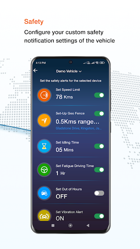 भू बाड़ लगाना, निष्क्रिय समय अधिसूचना, गति सीमा सूचनाएं, इग्निशन / बंद अधिसूचना ** पर, थकान बार की सूचना ड्राइविंग, वाहन इंजन स्वास्थ्य निदान *, रिमोट इंजन काट **