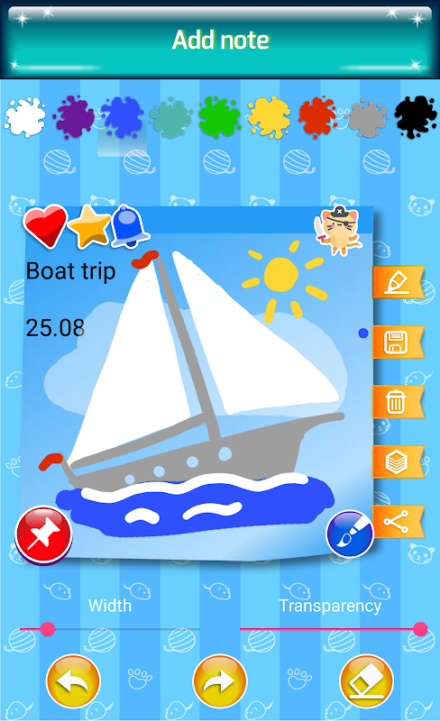 आप अपने नोट में कुछ आकर्षित भी कर सकते हैं। ब्रश की चौड़ाई और पारदर्शिता चुनें!
