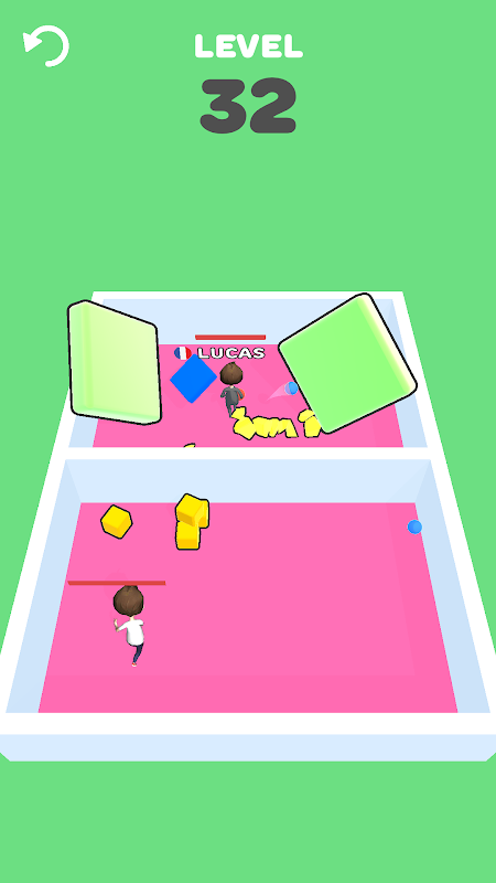 Just drag and set the target and throw the ball to knock down the opponent.