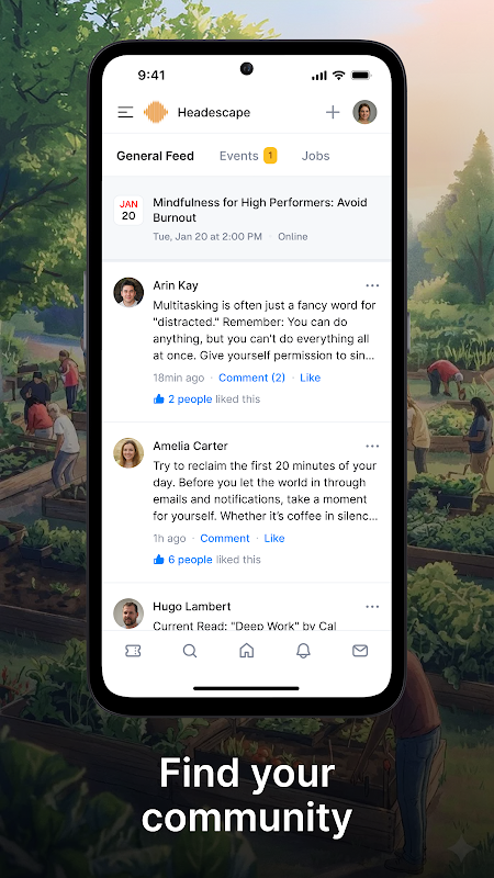 पर्सनलाइज़्ड फ़ीड: अपने समुदायों और अपने फ़ॉलो किए गए लोगों की घोषणाएं, पोस्ट और नए इवेंट्स - सब कुछ अपनी होम स्क्रीन पर एक ही जगह देखें।