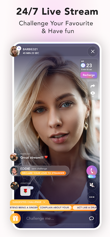 सामग्री निर्माता अपने लाइवस्ट्रीम रूम साझा करते हुए, फोटो और वीडियो सामग्री को आकर्षक बनाते हुए अपनी कल्पना को उजागर कर सकते हैं, जिसके बारे में वे सबसे अधिक भावुक हैं। इसे आसान बनाने के लिए हमने यात्रा, फैशन, खेल, सौंदर्य, छेड़खानी, जीवन शैली और लगभग कुछ भी जो आप सोच सकते हैं, सहित कई श्रेणियां स्थापित की हैं। केवल आपकी कल्पना ही एक सीमा है।