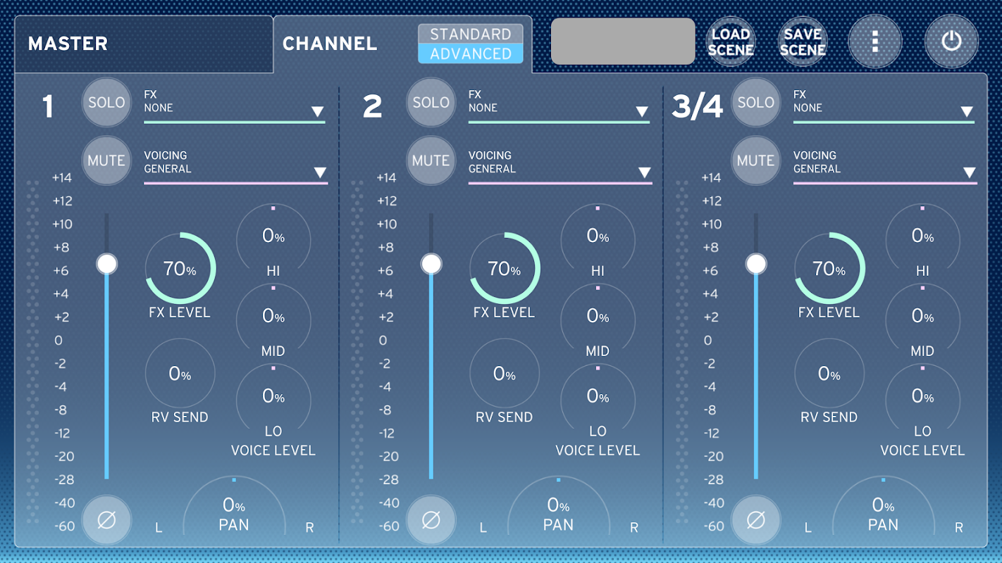 * "बहु प्रभाव (कंप्रेसर, कोरस, देरी)" "FX स्तर" प्रत्येक चैनल पर नियंत्रण के साथ आदर्श ध्वनि प्राप्त करने के।
