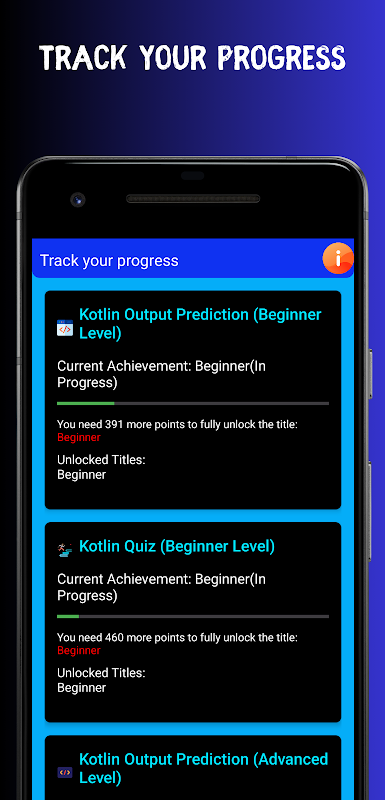कोटलिन प्रोग्रामिंग क्विज़ गेम एकदम सही समाधान है! चाहे आप एक नौसिखिया, अनुभवी डेवलपर या कोटलिन उत्साही हों, यह ऐप आपकी कोडिंग क्षमताओं को बढ़ाने के लिए इंटरैक्टिव क्विज़ मोड प्रदान करता है—साथ ही, यह पूरी तरह से ऑफ़लाइन काम करता है!