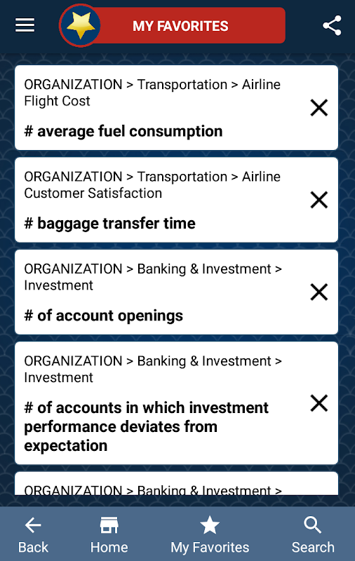 इस एप्लिकेशन का उद्देश्य आप सबसे उचित उपाय करने के लिए एक त्वरित और प्रभावी उपयोग दे रहा है। 36,000 KPIs या मीट्रिक एक तार्किक और वर्णमाला के क्रम में वर्गीकृत कर रहे हैं। आप आसानी से (कुछ ही सेकंड में) किसी भी उद्योग या क्षेत्र में किसी भी समारोह को मापने के लिए सबसे अच्छा कुंजी प्रदर्शन सूचक पा सकते हैं।