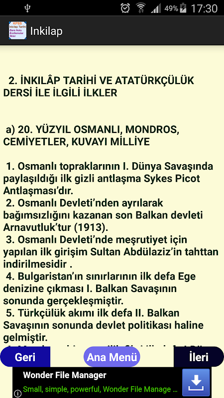 6. İnkılap Tarihi Kısa Ders Notu
