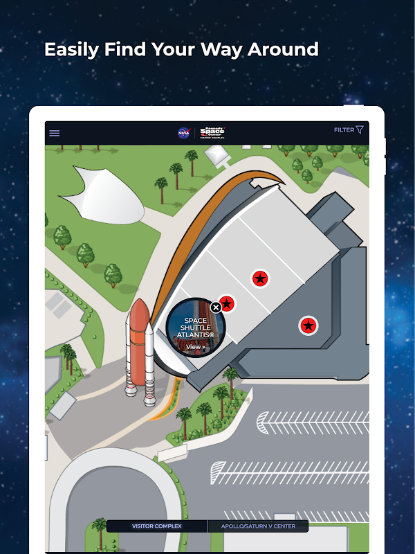 अपोलो/सैटर्न वी सेंटर, स्पेस शटल अटलांटिस, गेटवे: द डीप स्पेस लॉन्च कॉम्प्लेक्स और बहुत कुछ एक्सप्लोर करते हुए अंतरिक्ष अन्वेषण के इतिहास की खोज करें। लॉन्च पैड, क्रॉलरवे और अन्य ऐतिहासिक स्थलों को देखने के लिए कैनेडी स्पेस सेंटर बस टूर पर सवारी करें। इस गाइड के साथ, आप परिसर का अन्वेषण करते हुए प्रत्येक आकर्षण के बारे में विस्तार से जान सकते हैं। इस इंटरैक्टिव टूर गाइड के साथ केनेडी स्पेस सेंटर विज़िटर कॉम्प्लेक्स में अपनी यात्रा को और भी यादगार बनाएं!