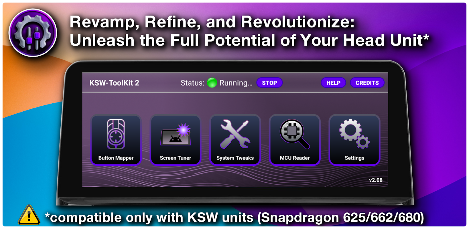 केएसडब्ल्यू-टूलकिट में आपका स्वागत है, जो आपके आफ्टरमार्केट एंड्रॉइड हेड यूनिट अनुभव को अनुकूलित करने के लिए आपका अंतिम समाधान है! एंड्रॉइड 10 या उच्चतर पर चलने वाले स्नैपड्रैगन 625, 662, या 680 डिवाइसों के लिए विशेष रूप से तैयार की गई हमारी व्यापक सुविधाओं के साथ अपने डिवाइस की पूरी क्षमता को अनलॉक करें।