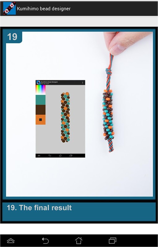 This App makes it possible to create your own original Kumihimo design where you choose which color each bead is. In this way you can design the most colorful patterns. The possibilities are endless!