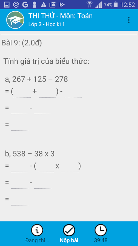 Lớp 3 toán, tiếng việt, đề thi APK जानकारी