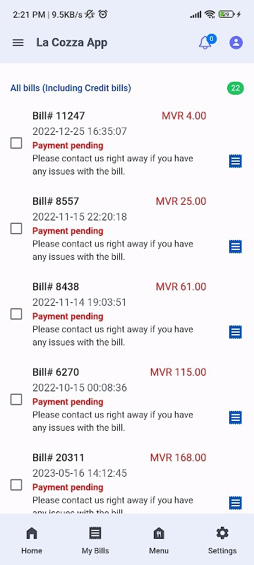 ला कोज़ा कैफे पर, आप ग्राहक चालान देख और भुगतान कर सकते हैं।