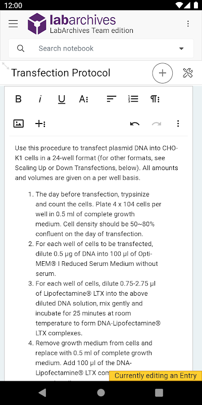 यह मोबाइल ऐप एंड्रॉइड फोन और टैबलेट पर मोबाइल-अनुकूल तरीके से डेस्कटॉप लैबआर्काइव्स ईएलएन कार्यक्षमता प्रदान करता है। LabArchives ELN द्वारा प्रदान किए जाने वाले सभी टूल के अलावा टेक्स्ट प्रविष्टियों को निर्देशित करने, चित्र, वीडियो और ऑडियो फ़ाइलें जोड़ने के लिए सहज मोबाइल सुविधाओं का लाभ उठाएं।