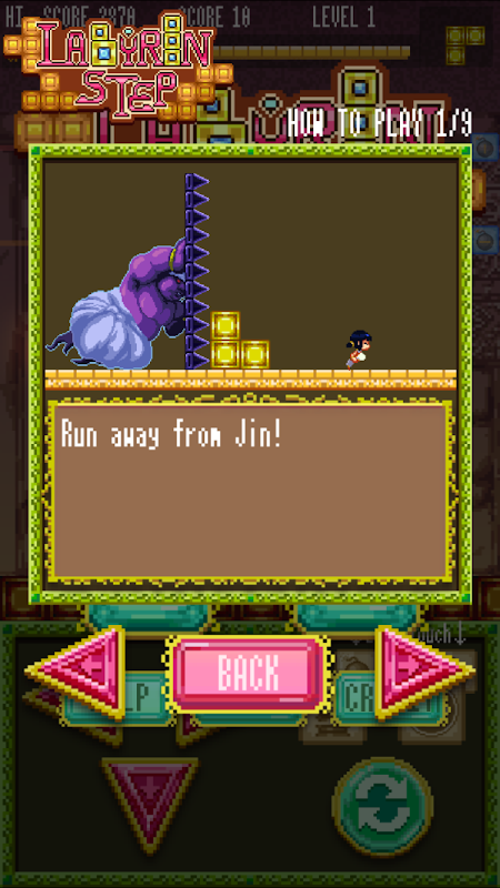 यह एक पहेली-शैली वाला रन गेम है जो राक्षसी दिव्य "जिन" से बचता है जो निकट आ रहा है।