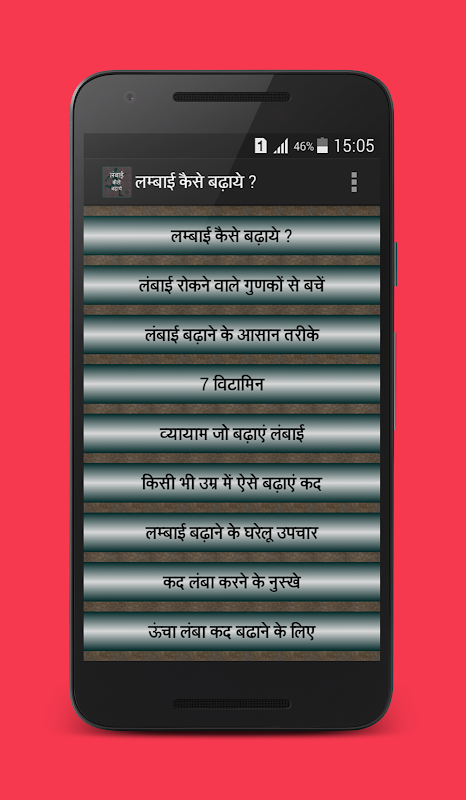 इस एप्लिकेशन को हिंदी में Lambai Aur Vajan Kaise Badhaye के लिए सुझाव शामिल हैं।