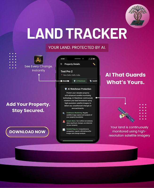 एआई सैटेलाइट अलर्ट के माध्यम से भूमि की सीमाओं का मानचित्रण करें, क्षेत्रफल मापें और संपत्ति की निगरानी करें।
