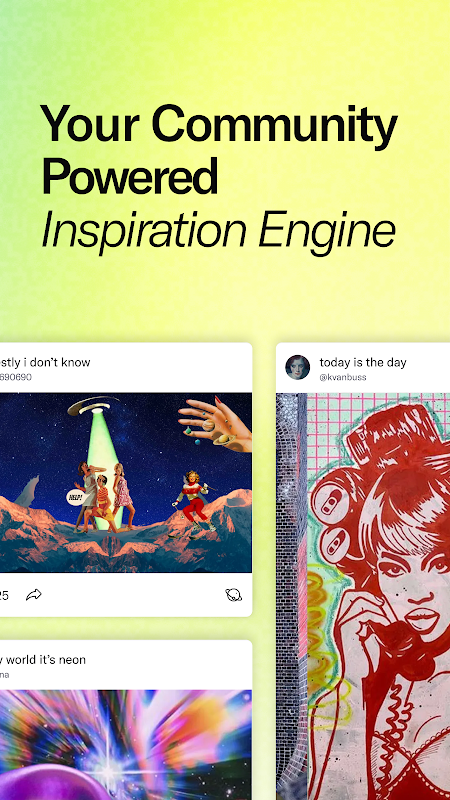 लैंडिंग आपका समुदाय-संचालित प्रेरणा इंजन है। प्रेरणा के अपने व्यक्तिगत केंद्र को व्यवस्थित करने के लिए कम्युनिटी स्पेस में शामिल हों और आपको, आप बनाने वाले सभी गतिशील आला हितों पर रचनाकारों के वैश्विक नेटवर्क से जुड़ें! डिस्कवर फ़ीड में खुद को डुबोएं, अपने पसंद के निशानों के आस-पास कम्युनिटी स्पेस में शामिल हों, और अपना विज़ुअल ब्लॉग बनाने के लिए अपनी प्रोफ़ाइल में क्यूरेट बोर्ड बनाएं और अपने वाइब के स्नैपशॉट के रूप में साझा करने के लिए कोलाज बनाएं।