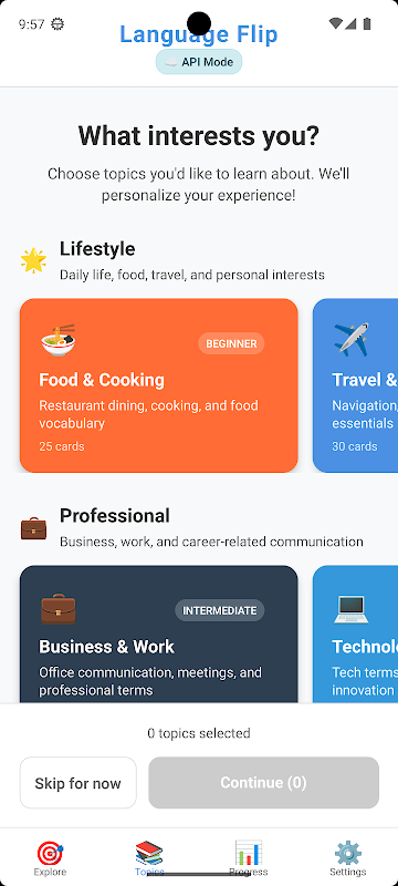 LanguageFlip के साथ भाषा सीखने के अपने तरीके को बदलें - यह ऐप आपको शब्दों से आगे बढ़कर पूरे वाक्यों में स्वयं को अभिव्यक्त करने में मदद करता है।