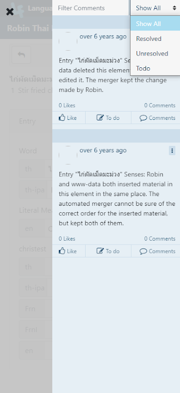 एक प्रबंधक के रूप में, आप टिप्पणियों की समीक्षा कर सकते हैं और उन्हें एक व्यापक शब्दकोश समीक्षा प्रक्रिया के भाग के रूप में हल या टूडू के रूप में चिह्नित कर सकते हैं।
