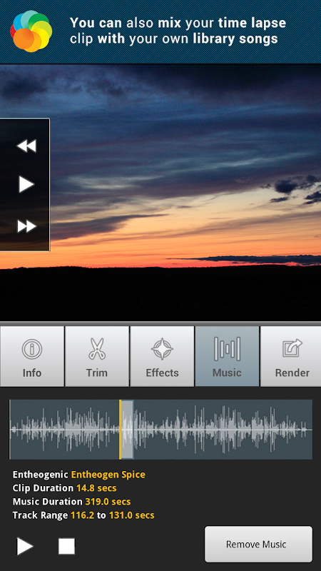● अपने वीडियो के साउंड ट्रैक के रूप में अपने पुस्तकालय से किसी भी गीत का उपयोग