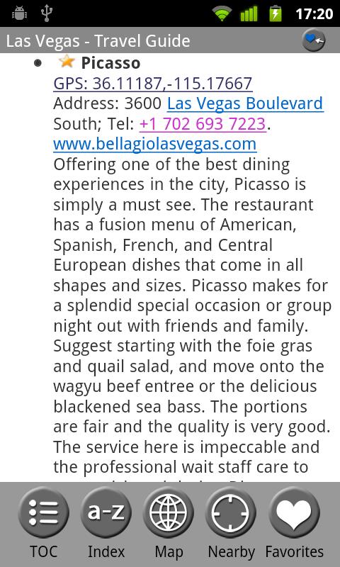 MobileReference Travel Guides provide detailed, practical information about attractions, landmarks, transportation, cultural venues, dining, lodging, history and much more. They are indexed alphabetically and by category, making it easier to access individual articles. Attractions can be viewed on an offline GPS map along with your current location so that you can easily find attractions near you as you explore the city.