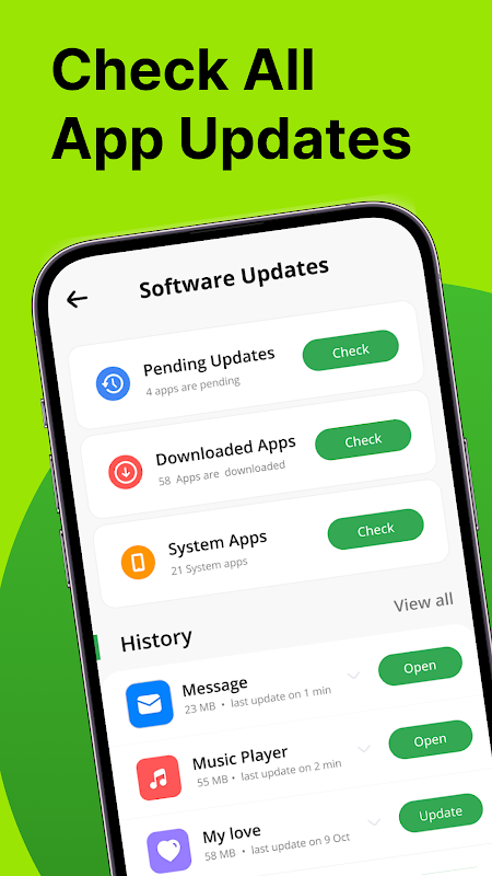 Update Software Latest will automatically check for pending software updates including all your downloaded Apps & Games at regular intervals.