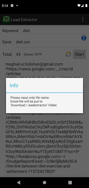 लीड एक्सट्रैक्टर (लीड हंटर) ऐप आपको ईमेल और बिल्डिंग लीड को अपने पसंदीदा कीवर्ड के आधार पर निकालने में मदद करता है। आपको बस अपने कीवर्ड को इस ऐप पर इनपुट करना होगा और स्टार्ट एक्स्ट्रेक्ट पर क्लिक करना होगा।