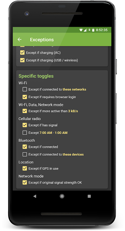 -Don’t check traffic if not set to toggle any data connections