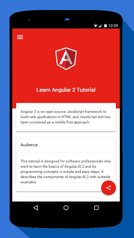 This app Learn Angular 2 Tutorial is developed using AngularJS ,Ionic and Cordova framework.Basics: