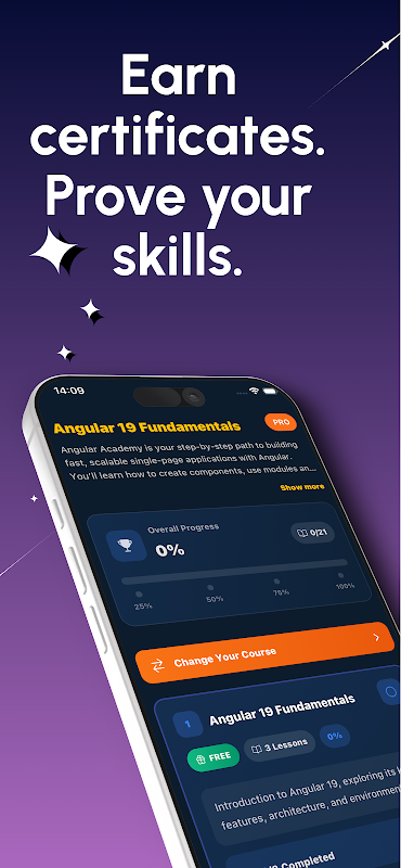 प्रमाणन और करियर को बढ़ावा: पाठ पूरा करें, परीक्षा उत्तीर्ण करें, और अपने बायोडाटा या लिंक्डइन पर प्रदर्शित करने के लिए पेशेवर एंगुलर प्रमाणपत्र अर्जित करें।