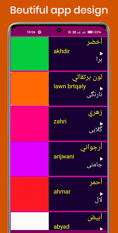 4. लर्न स्पोकन अरेबिक फ्रॉम उर्दू ऐप एक खूबसूरत ऐप डिज़ाइन के साथ आता है जिससे उर्दू के माध्यम से अरबी सीखना एक सुखद अनुभव बन जाता है। मैं