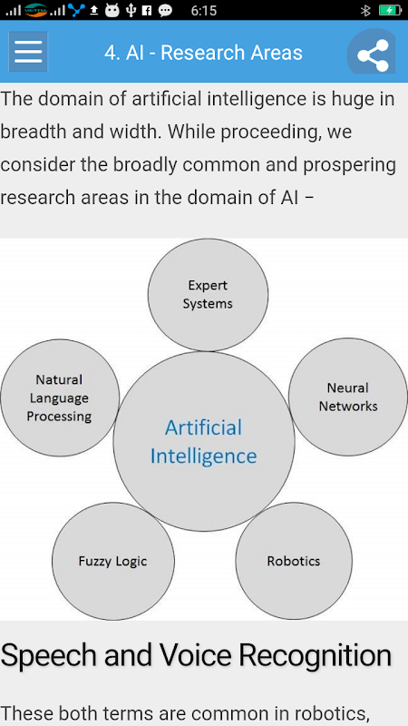 This Learn Artificial Intelligence Full provides introductory knowledge on Artificial Intelligence. It would come to a great help if you are about to select Artificial Intelligence as a course subject. You can briefly know about the areas of AI in which research is prospering.