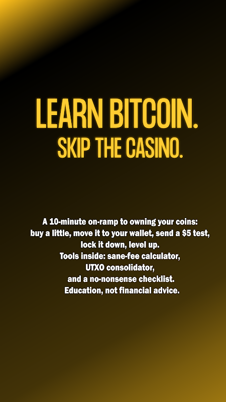 यह ऐप उन लोगों के लिए शुरुआती से लेकर मध्यवर्ती स्तर तक की मार्गदर्शिका है जो बिटकॉइन को सही तरीके से अपनाना चाहते हैं—स्व-संरक्षण में, बिना किसी बिचौलिए को चाबी सौंपे। छोटे पाठ, सरल अंग्रेजी और व्यावहारिक चेकलिस्ट जो आपको उन चरणों के लिए प्रचलित शब्दों का आदान-प्रदान करती हैं जिनका आप वास्तव में पालन कर सकते हैं।