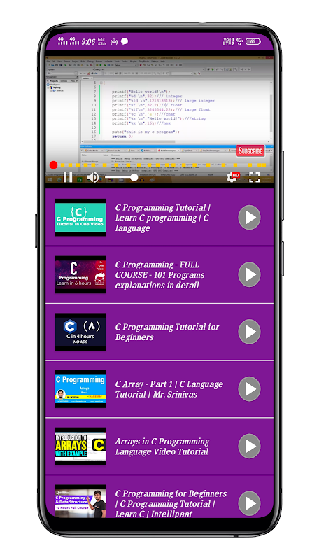 This App Provided All C / C# Programming Video All C / C# through video in this app Programming is taught and you can do a lot of programming coding by watching videos.