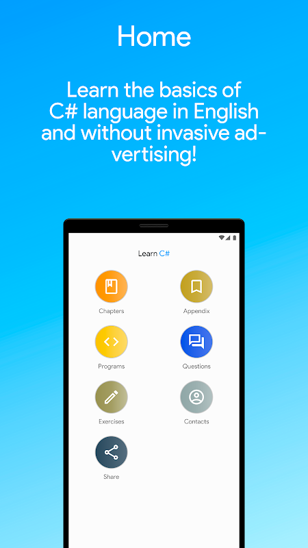 क्या आप अंग्रेजी में C # प्रोग्रामिंग भाषा सीखना चाहते हैं और बिना आक्रामक विज्ञापन के? इस शानदार एप्लिकेशन को डाउनलोड करें!